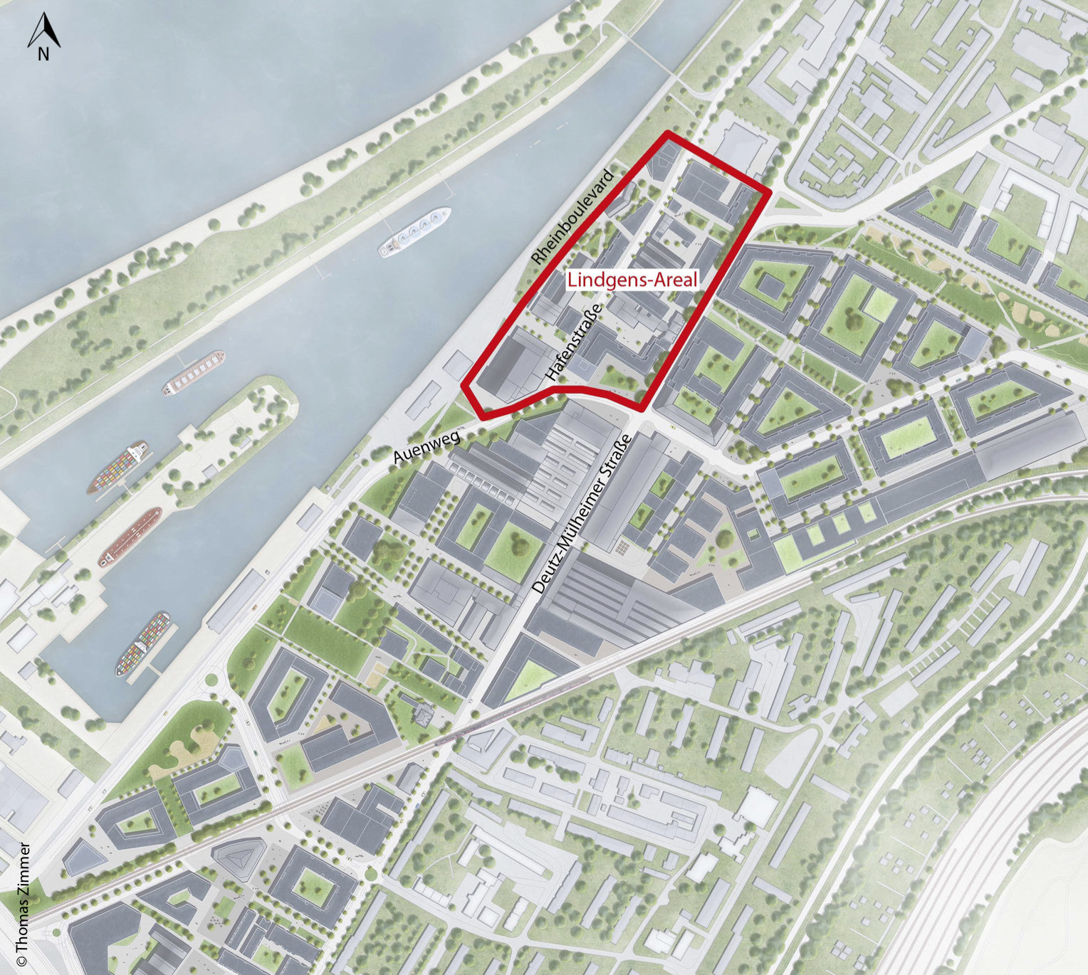 Mit dem Wettbewerbsverfahren wurde für die zukünftig öffentliche Platzfläche eine gestalterische und diesem Ort angemessene qualitätsvolle Gestaltung als Entrée in das neue Quartier gefunden. Der Platz ist dem Hochhaus und seiner angrenzenden Bebauung vorgelagert. Der vorhandene Baumbestand auf der Platzfläche wird erhalten und um zwei Bäume ergänzt. Er wird in zwei prägnante Pflanzinseln integriert, die in ihrer Ausgestaltung einer klimagerechten Platzgestaltung gerecht werden. Die Platzfläche übernimmt als neuer Quartiersplatz eine über das Lindgens-Areal hinausgehende übergeordnete vernetzende Funktion. Sie überzeugt mit einer hohen Nutzungsflexibilität und vielfältigen Aufenthaltsmöglichkeiten. Die Wettbewerbsbeiträge hatten wir vom 23. September bis 13. Oktober 2023 im Bezirksrathaus Mülheim öffentlich ausgestellt.