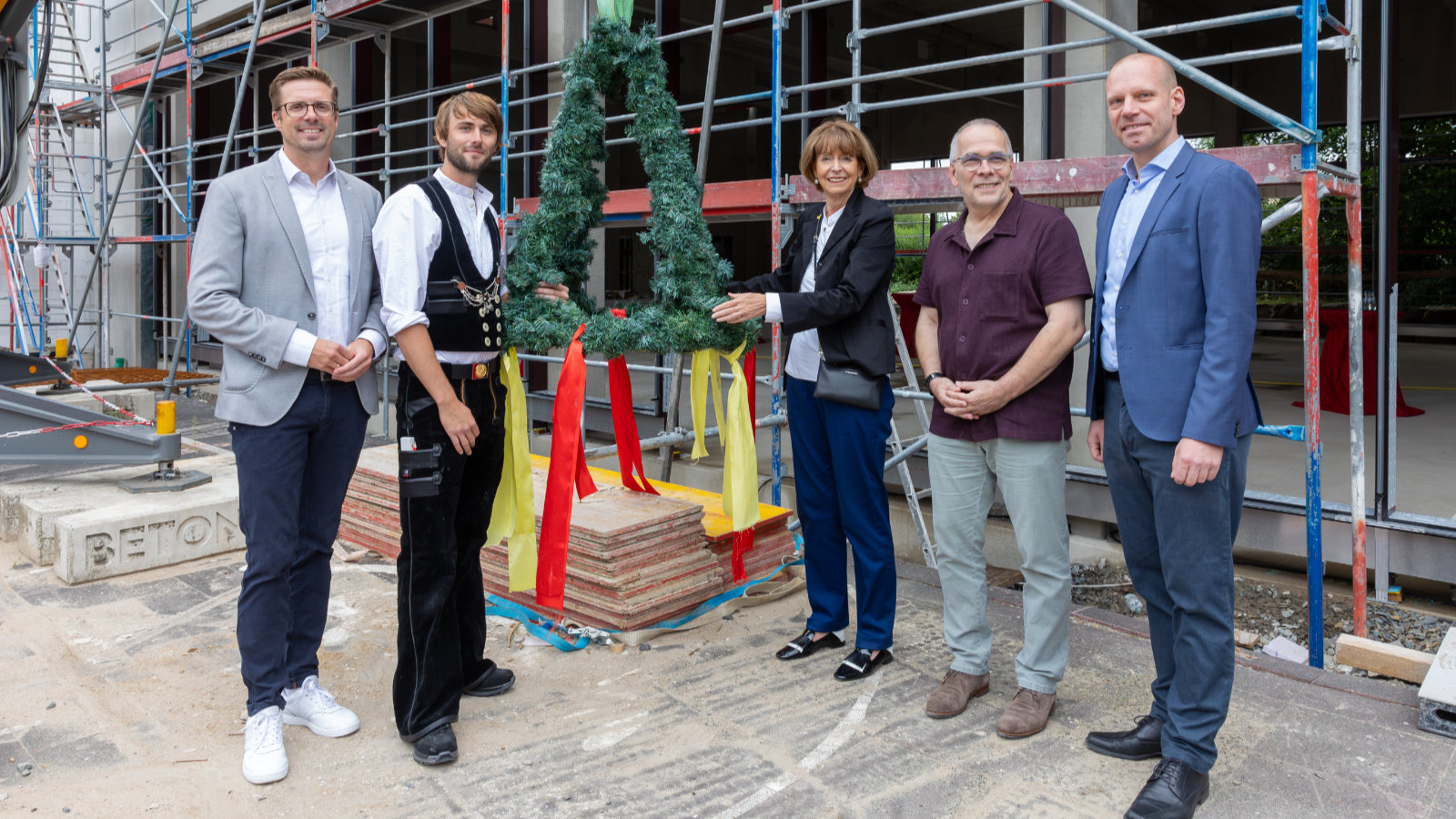 Im Februar 2025 haben wir mit dem Bau der Aula begonnen, am 3. September 2025 konnten wir schon Richtfest feiern: Oberbürgermeisterin Henriette Reker, Andree Haack – Dezernent für Stadtentwicklung, Wirtschaft, Digitalisierung und Regionales, Schulleiter Martin Süsterhenn sowie Tim Schneider, Geschäftsführer des Totalunternehmens Fechtelkord & Eggersmann GmbH, haben mit den an der Planung und dem Bau Beteiligten das Richtfest für die neue Aula der Katharina Henoth-Gesamtschule in Höhenberg begangen.