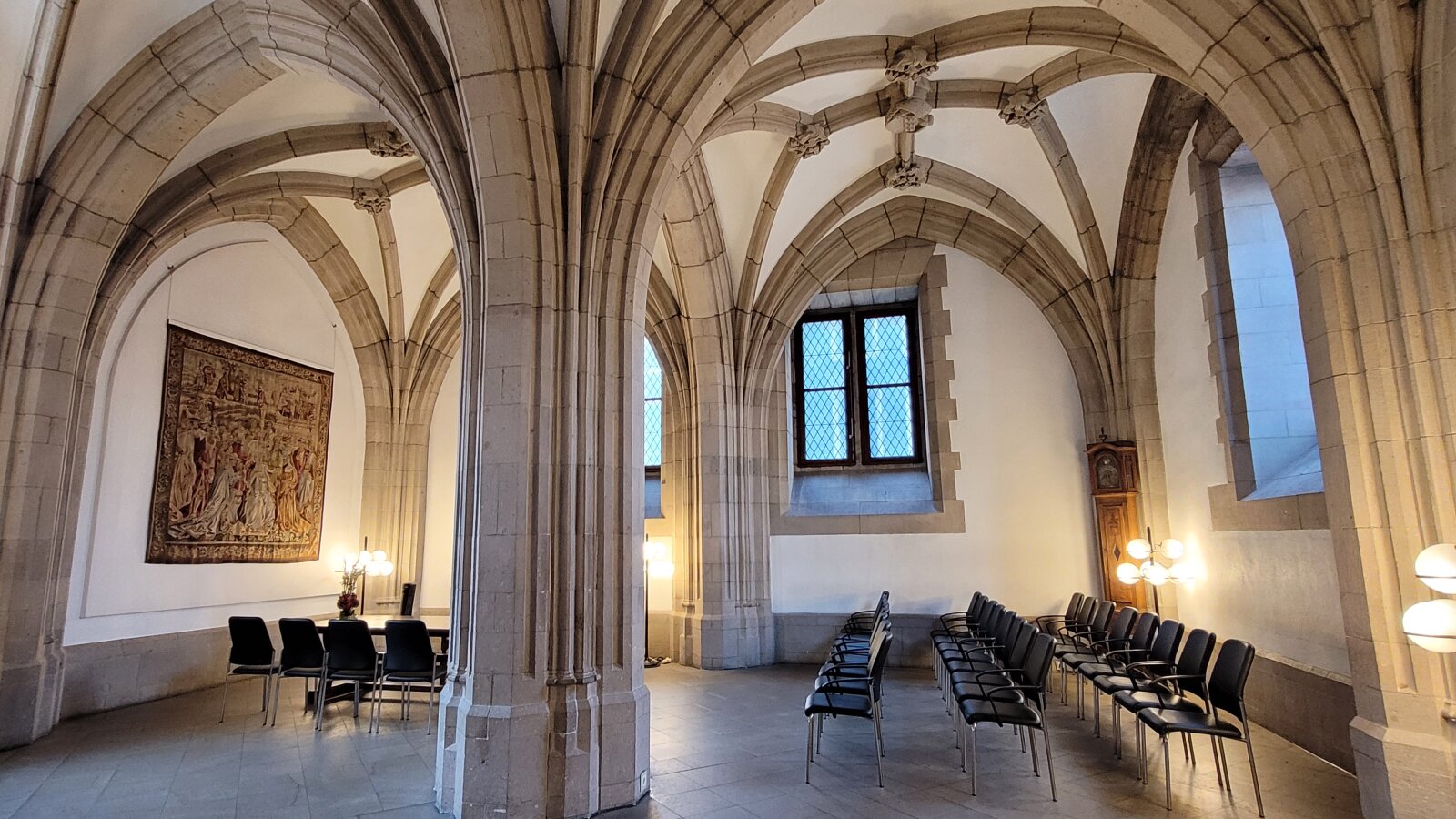 Der Name Rentkammer erinnert noch heute an seine ursprüngliche Funktion als Archiv und Standort des Tresors der Stadt. Sie war im frühen 15. Jahrhundert der Sitz des Rentmeisters, der sich um die finanziellen Angelegenheiten der Stadt kümmerte. Der Raum bietet neben Ihnen und einem*r Fotograf*in Platz für maximal 80 Gäste. Zu dieser Personenzahl zählen auch Kinder jeden Alters sowie Ihre Trauzeug*innen. Der Eingangsbereich und das Trauzimmer ist für Rollstuhlfahrende eingeschränkt zugänglich.