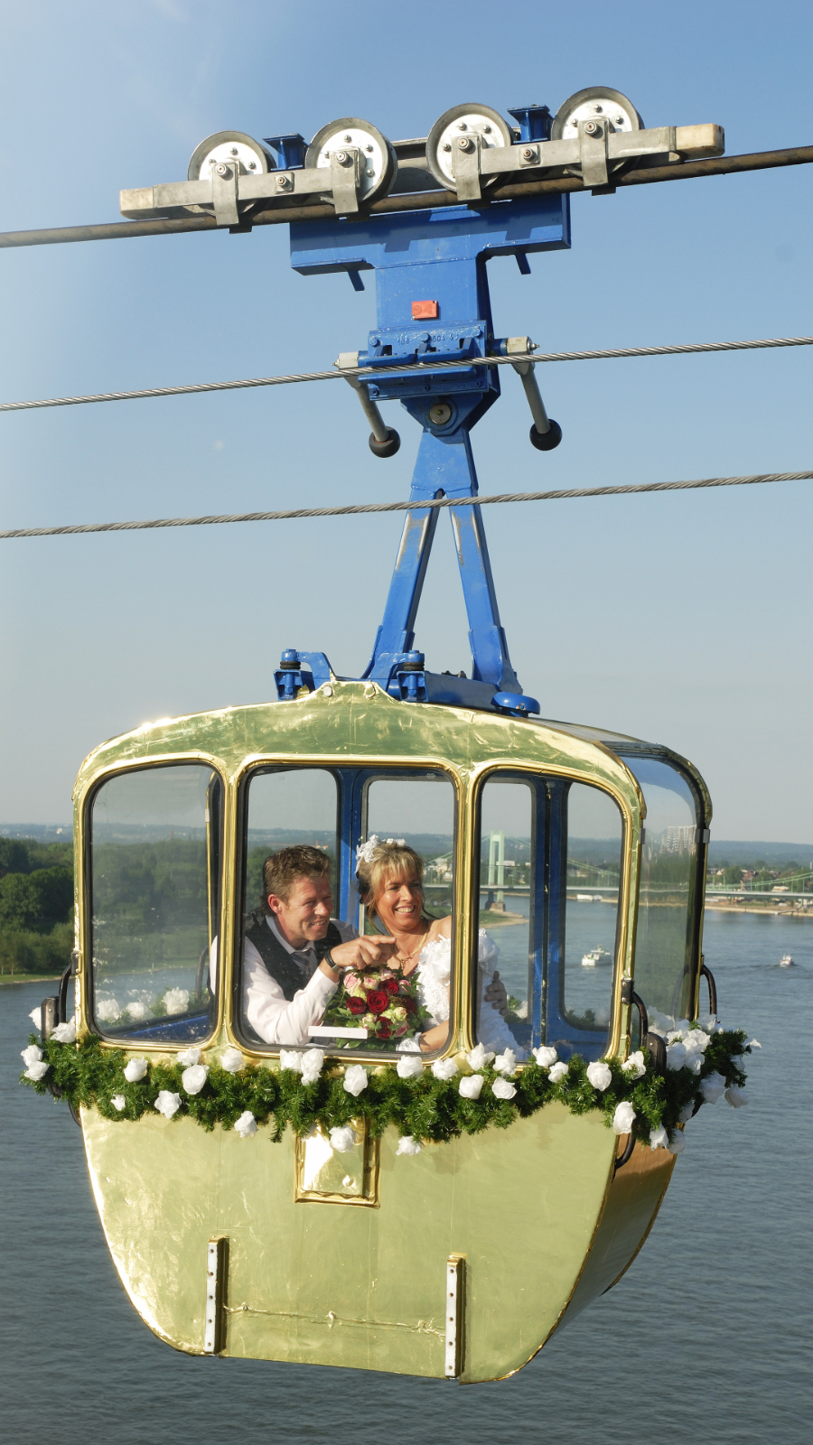 Seit 2008 haben Sie die Möglichkeit, sich in der Rheinseilbahn trauen zu lassen. Dabei gewähren wir Ihnen bei einer sehr intimen Feier einen unvergleichlichen Blick auf das Stadtpanorama. Die Trauung findet während der Fahrt über den Rhein statt. Die Gondel bietet Platz für insgesamt drei Personen, das Hochzeitspaar und den*die Standesbeamt*in.
