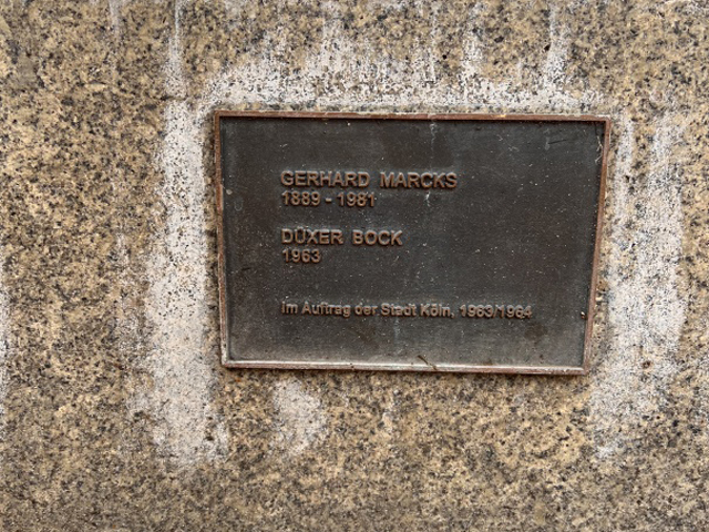Anlässlich des 500-jährigen Bestehens der Sankt-Sebastianus-Schützenbruderschaft wurde der "Düxer Bock" 1964 von Gerhard Marcks auf einem Platz an der Lorenzstraße in Köln-Deutz errichtet. Für den Brunnen besteht eine Brunnenpatenschaft, welche ebenfalls die Beete auf dem Platz inkludiert.
