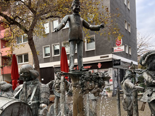 Der Brunnen wurde 1987 von Bonifatius Stirnberg auf dem Karl-Berbuer-Platz aus Bronze errichtet. Einige Anwohner*innen aus dem Veedel kümmern sich um den Brunnen und schauen regelmäßig nach dem Rechten.