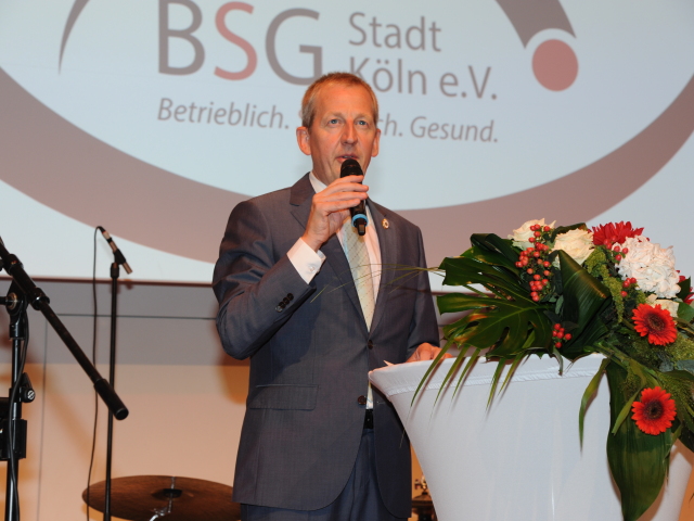 Im großen Festsaal wurde ihnen anschließend ein abwechslungsreiches Programm geboten. Nach Reden von Stadtdirektor Dr. Stephan Keller, der Oberbürgermeisterin Henriette Reker an diesem Abend vertrat, und Helmut Wefelmeier als Repräsentant des Westdeutschen Betriebssportverbands, ergriff der BSG-Vorsitzende Olaf Pohl das Wort und begrüßte die (Ehren-)Gäste.