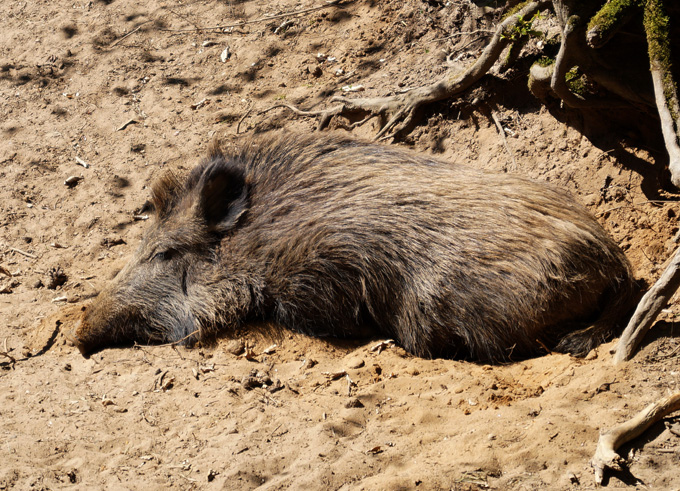 - Durch das Wildgehege Brück (2): Erst vorbei am Rot-, dann am Schwarzwild, dabei auf Hauptweg bleiben und entlang Flehbach, am Ende rechts über Brücke den Flehbach queren.