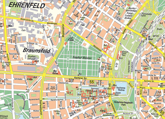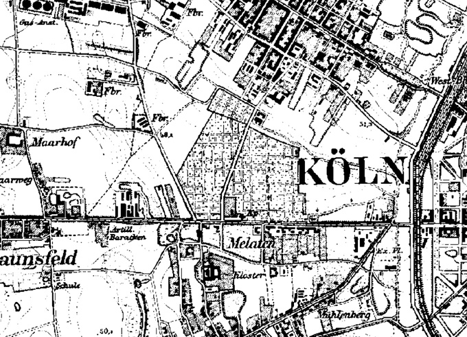 Das Stadtbild hat sich seitdem stark verändert und Melaten liegt nun inmitten der linksrheinischen Kölner Stadtteile.