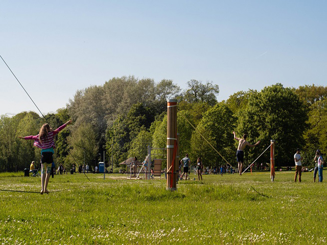 Viele unterschiedliche Varianten der Nutzung sind möglich: von kurzen, straff gespannten Bändern, über Trick-Lines zum Springen und Rodeo-Lines zum Surfen (ein Seil, auf dem im Stand geschaukelt wird) bis zu anspruchsvollen Longlines mit 50 Metern Länge. Die Slackline-Anlage ist ein Projekt der Sportentwicklungsplanung, die sich zum Ziel gesetzt hat, niederschwellige und kostenfreie Sport- und Bewegungsangebote im öffentlichen Raum zu schaffen.