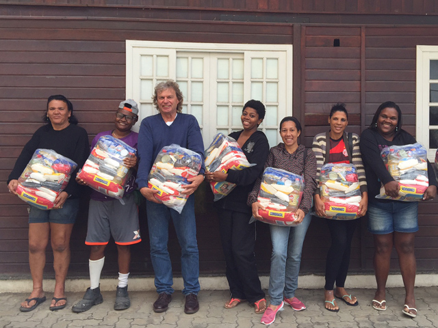 Außerdem konnte eine Spende über 1.250 Euro an die Frauen der Favela Triangolo in Rio übergeben werden, die die Gesamtschule durch eine Weihnachtssammlung zusammengetragen hatte. Damit konnten Lebensmittelsäcke mit Grundnahrungsmitteln gekauft und verteilt werden. Die Familien wurden durch Sozialarbeiter von "Bola para Frente" ausgewählt, denn 20 Prozent aller Kinder der Partnereinrichtung kommen aus dieser Favela.