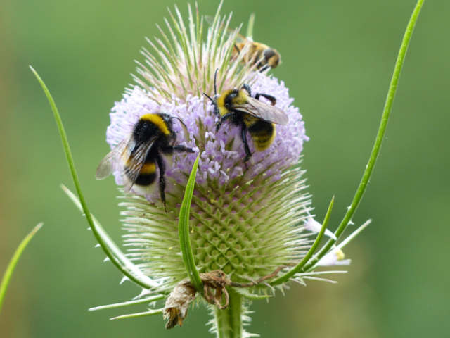 Was Artenvielfalt mit uns Menschen zu tun hat kann anschaulich anhand der Wildbienen vermittelt werden. Als wichtige Bestäuber unserer Wild- und Kulturpflanzen tragen sie nicht nur wesentlich zur Ernährungssouveränität bei. Sie sichern auch artenreiche Wiesen als wichtige Lebensräume. Inzwischen sind mehr als 50 Prozent der Arten gefährdet mit unabsehbaren Folgen für unsere Ökosysteme.