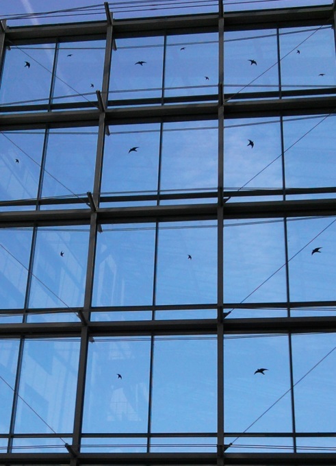 Auch Gefahrenquellen bei bereits bestehenden Gebäuden müssen nachträglich entschärft werden. Dies bedeutet nicht, dass eine Glaswand entfernt werden muss! Mit Hilfe bestimmter Methoden können die Glasfassaden so optimiert werden, dass sich der Vogelschlag verhindern lässt.
