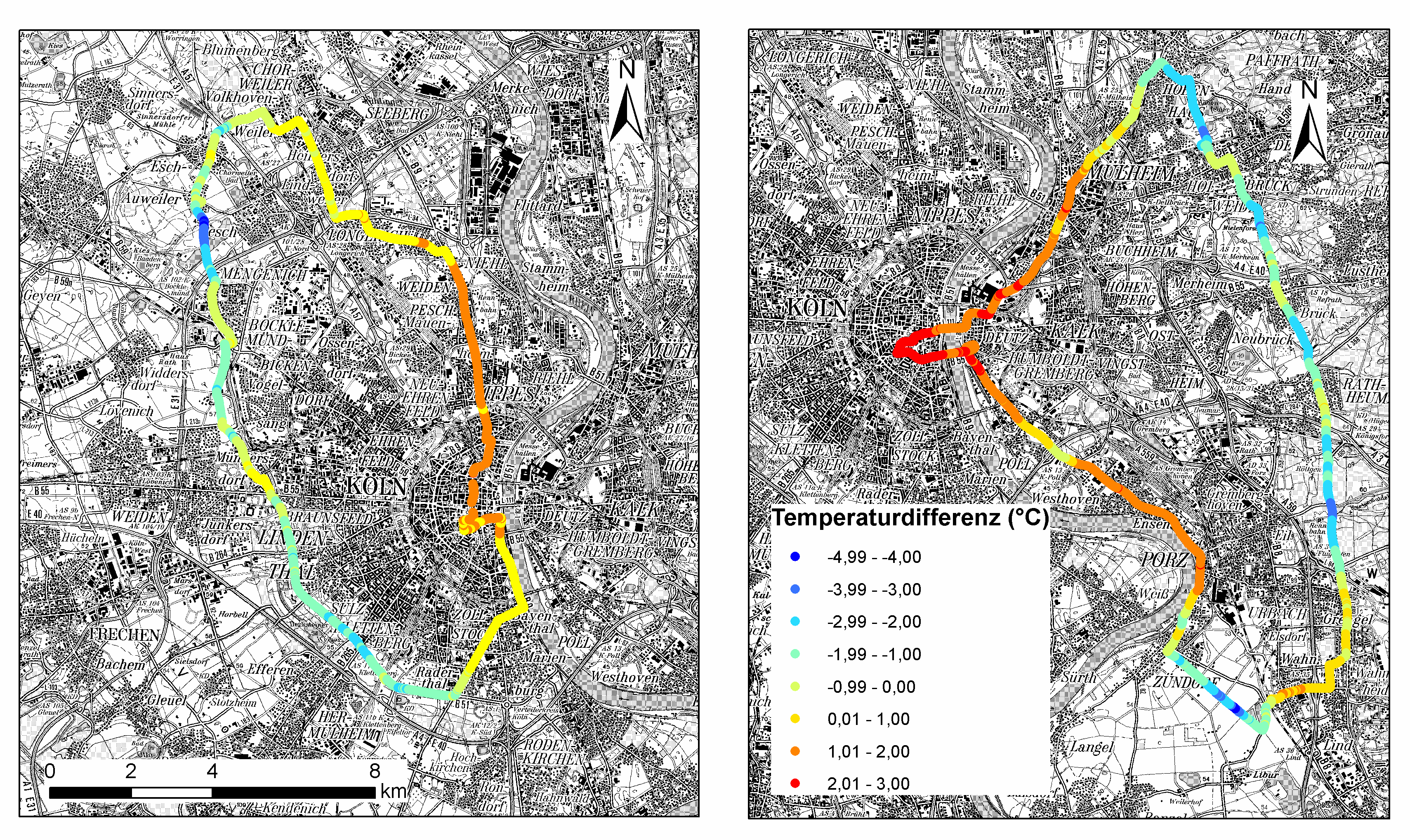 Während des Projektes ist ein umfangreiches meteorologisches Messnetz eingerichtet worden, das auf dem Gebiet der Stadt Köln meteorologische Messungen durchgeführt hat. Es wurden die Parameter Lufttemperatur, Niederschlag, Wind (Windrichtung, Windgeschwindigkeit), Luftfeuchte und Strahlung in hoher zeitlicher Auflösung erfasst. Zudem wurden Profilfahrten (Messfahrten) bei austauscharmen Hochdruckwetterlagen zur Identifikation von Temperaturunterschieden im Stadtgebiet durchgeführt. Dabei zeigten sich Temperaturunterschiede von etwa 10 Grad Celsius zwischen der dicht bebauten Innenstadt und dem Außenbereich, was den schon jetzt vorhandenen Wärmeinseleffekt verdeutlicht.
