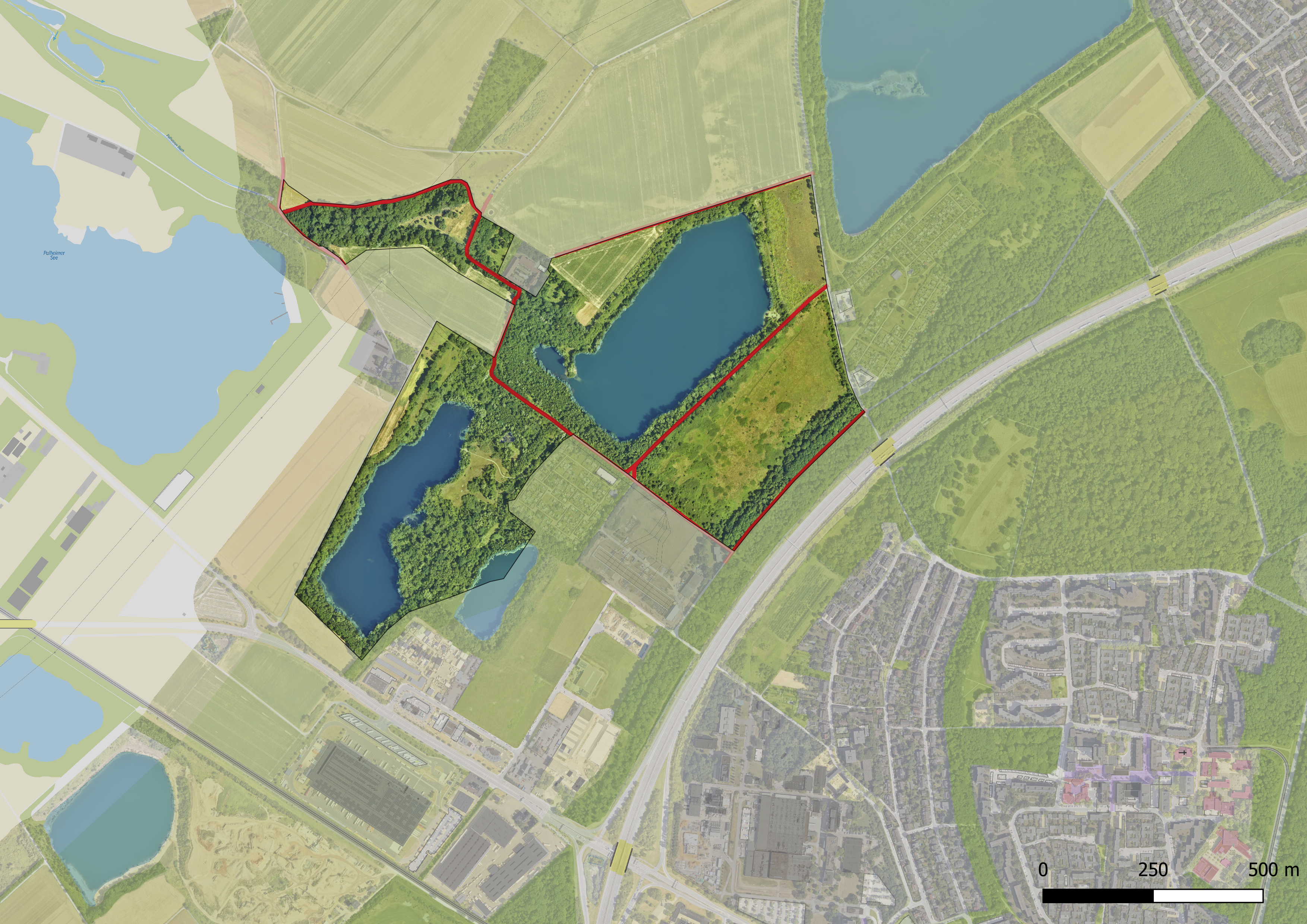 Bei diesem Naturschutzgebiet handelt es sich um einen strukturreichen Komplex aus verschiedenen Lebensraumtypen. Das Gebiet ist insbesondere durch die Wasserflächen der ehemaligen Kiesgruben gekennzeichnet, deren markante Steilböschungen mit Laubholzmischbeständen bestockt sind.