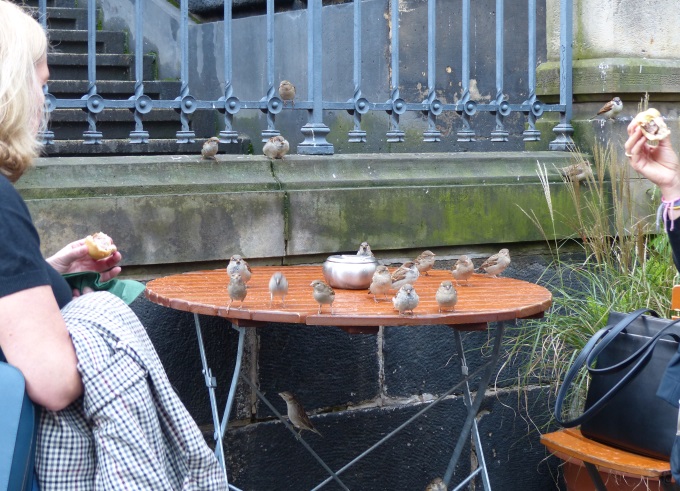 Heute gilt der Spatz vor allem in Städten als niedlicher Begleiter. Mit seiner quirligen, neugierigen Art erfreut er Besucherinnen und Besucher, die ihn in Straßencafés oder -restaurants gerne füttern.
