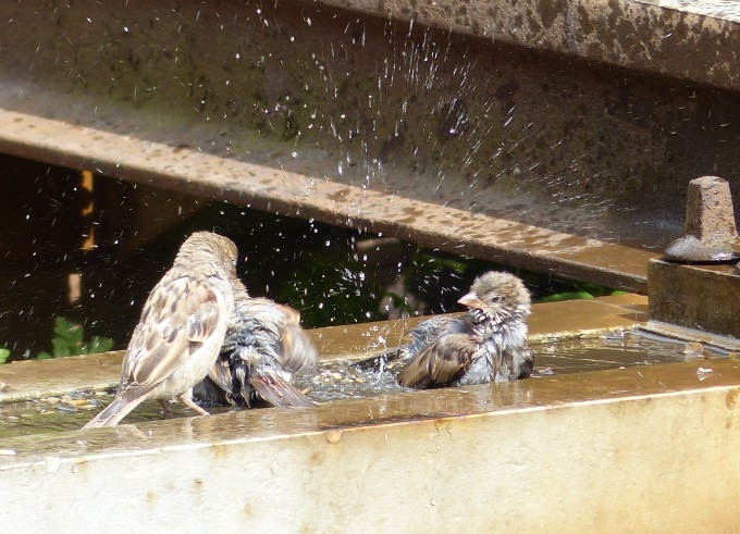Neben der Nahrung benötigt der Haussperling natürlich auch geeignete Wasserstellen zum Trinken. Um an Wasser zu kommen, werden von Pfützen über Brunnen und Teiche alle zur Verfügung stehenden Möglichkeiten genutzt. Manchmal müssen die kleinen Vögel nicht nur erfinderisch, sondern auch ganz schön akrobatisch sein, um an das begehrte Nass zu gelangen. Wichtig ist vor allem, dass das Wasser sauber ist, damit keine Krankheiten übertragen werden.