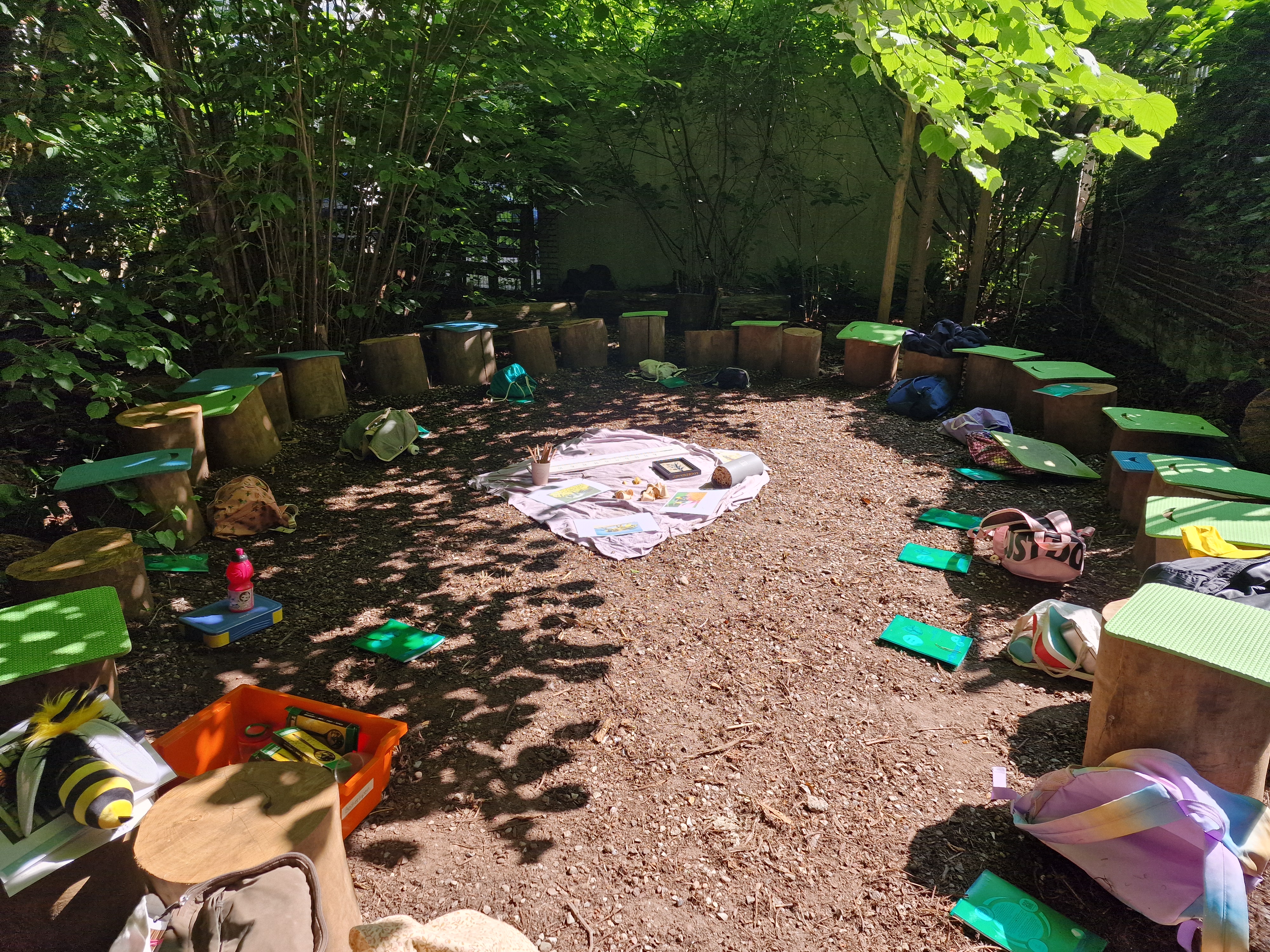 | Grünes Klassenzimmer | Beschattung durch Vegetation. Es kann Unterricht im Freien praktiziert werden, das Grün bietet im Sommer den Sonnenschutz. |