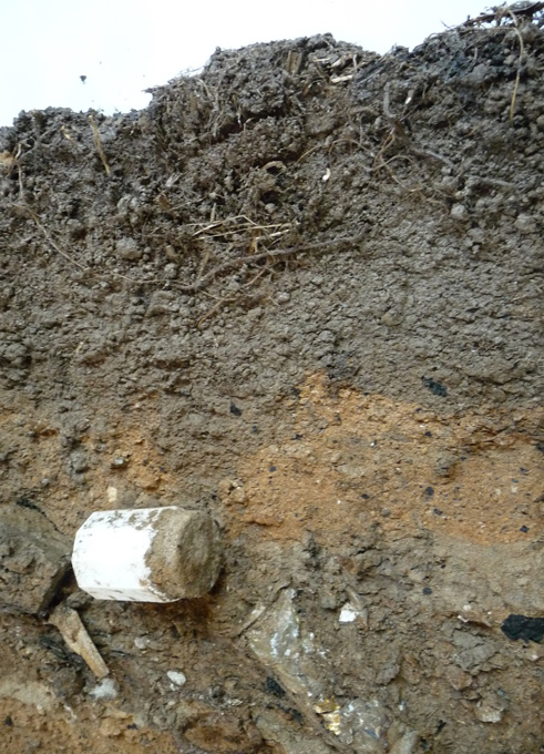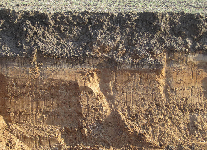 Das Foto links zeigt einen Querschnitt von Parabraunerden auf Löß.