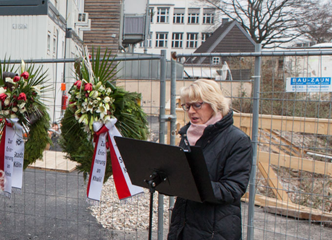 In Anwesenheit von Bürgermeisterin Elfi Scho-Antwerpes, dem Vorstand der Kölner Verkehrs-Betriebe, Jürgen Fenske, der Leiterin des Historischen Archivs, Dr. Bettina Schmidt-Czaia, Ratsmitgliedern, Anwohnerinnen und Anwohnern wurde eine Gedenkminute abgehalten. Zwei Kränze erinnerten an die beiden jungen Männer Khalil und Kevin.