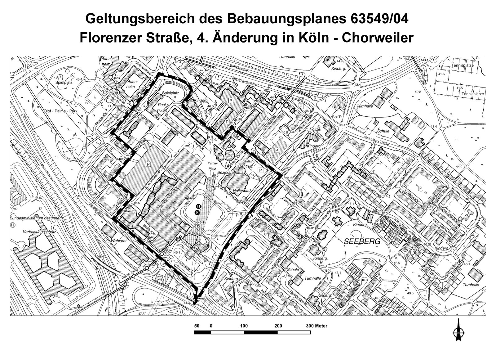 Das Plangebiet des Bebauungsplanes 63549/04, rechtsverbindlich seit dem 17 April 1972, umfasst derzeit den Kernbereich des Hauptzentrums Chorweiler zwischen Osloer Straße, Athener Ring und Willi-Suth-Allee. Die hier festgesetzte hochgeschossige Wohnbebauung ist fast vollständig realisiert.