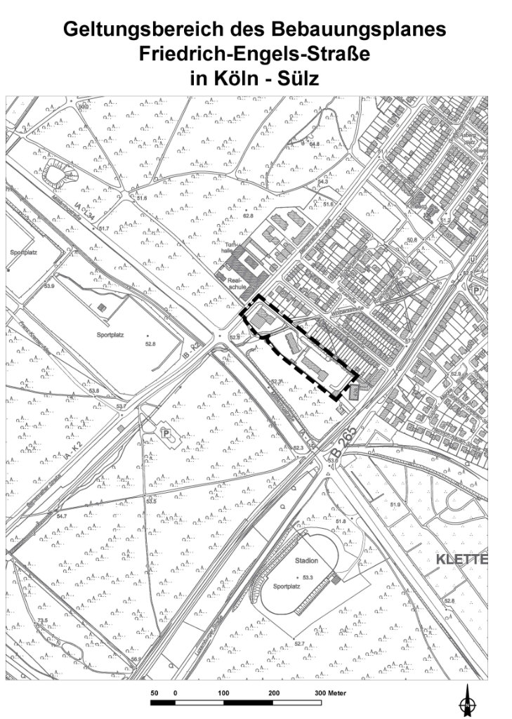 Der Stadtentwicklungsausschuss beschließt, nach § 2 Absatz 1 Baugesetzbuch (BauGB) einen Bebauungsplan für das Gebiet, gelegen südlich der Friedrich-Engels-Straße; Gemarkung Köln-Efferen, Flur 60, entlang der süd- östlichen Grenze der Flurstücke 434 und 418 über den Weg entlang der südöstlichen Grenze der Gemarkung Köln-Efferen, Flur 59 Flurstücke 442, 245 und 248 im Anschluss entlang der Berrenrather Straße – Arbeitstitel: Friedrich-Engels-Straße in Köln Sülz – aufzustellen mit dem Ziel, eine Fläche für Gemeinbedarf zur Bereitstellung von Gemeinbedarfsflächen der benachbarten Umgebung festzusetzen.