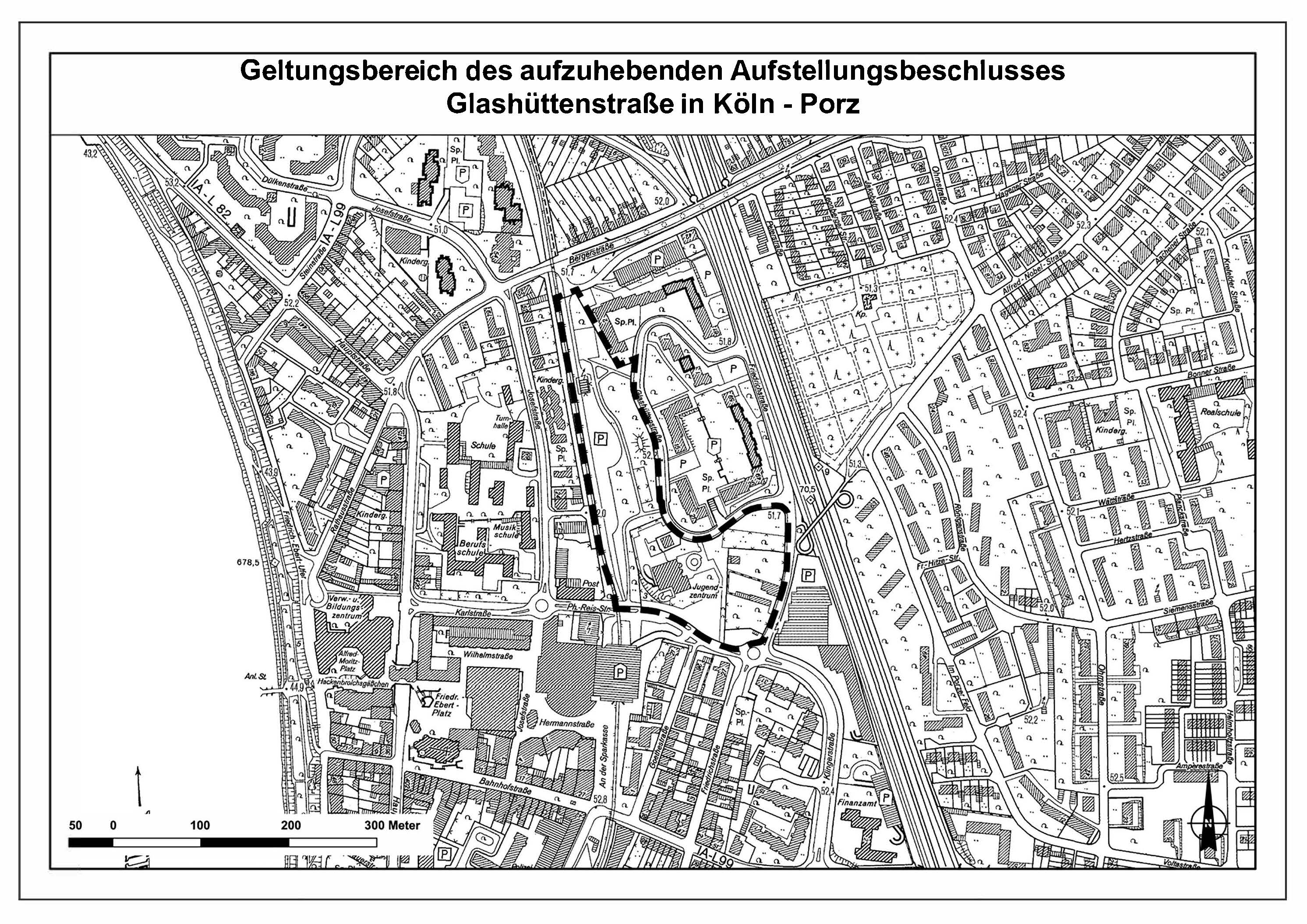 Der Ausschuss für Stadtentwicklung und regionale Zusammenarbeit (ehemals Stadtentwicklungsausschuss) hat in seiner Sitzung am 11. Dezember 2025 unter anderem beschlossen, den Aufstellungsbeschluss zum Bebauungsplanverfahren für das Gebiet umgrenzt von der KVB-Trasse der Linie 7, der Bergerstraße, der Glashüttenstraße, der Friedrichstraße und der Phillip-Reis-Straße - Arbeitstitel: Glashüttenstraße in Köln Porz nach § 2 Absatz 1 in Verbindung mit § 1 Absatz 8 Baugesetzbuch (BauGB) aufzuheben. Den Aufstellungsbeschluss hatte der Stadtentwicklungsausschuss am 14. Mai 2012 gefasst. Diesen haben wir am 30. Mai 2012 im Amtsblatt bekannt gemacht.