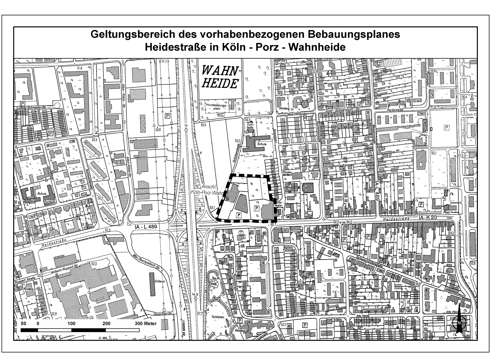 Die Aldi Süd Projektentwicklungs-GmbH & Co. KG hat einen Antrag auf Einleitung eines Verfahrens zur Aufstellung eines vorhabenbezogenen Bebauungsplans gemäß § 12 Absatz 2 Baugesetzbuch (BauGB) gestellt. Geplant ist am Standort in Porz-Wahnheide nördlich der Heidestraße auf dem rund 1,8 ha großen Areal verschiedene Nutzungen zu etablieren und in Form eines Sondergebietes festzusetzen. Am Standort sollen in Zukunft Einzelhandelsnutzungen in Kombination mit Wohnnutzungen und einer Pflegeeinrichtung errichtet werden.