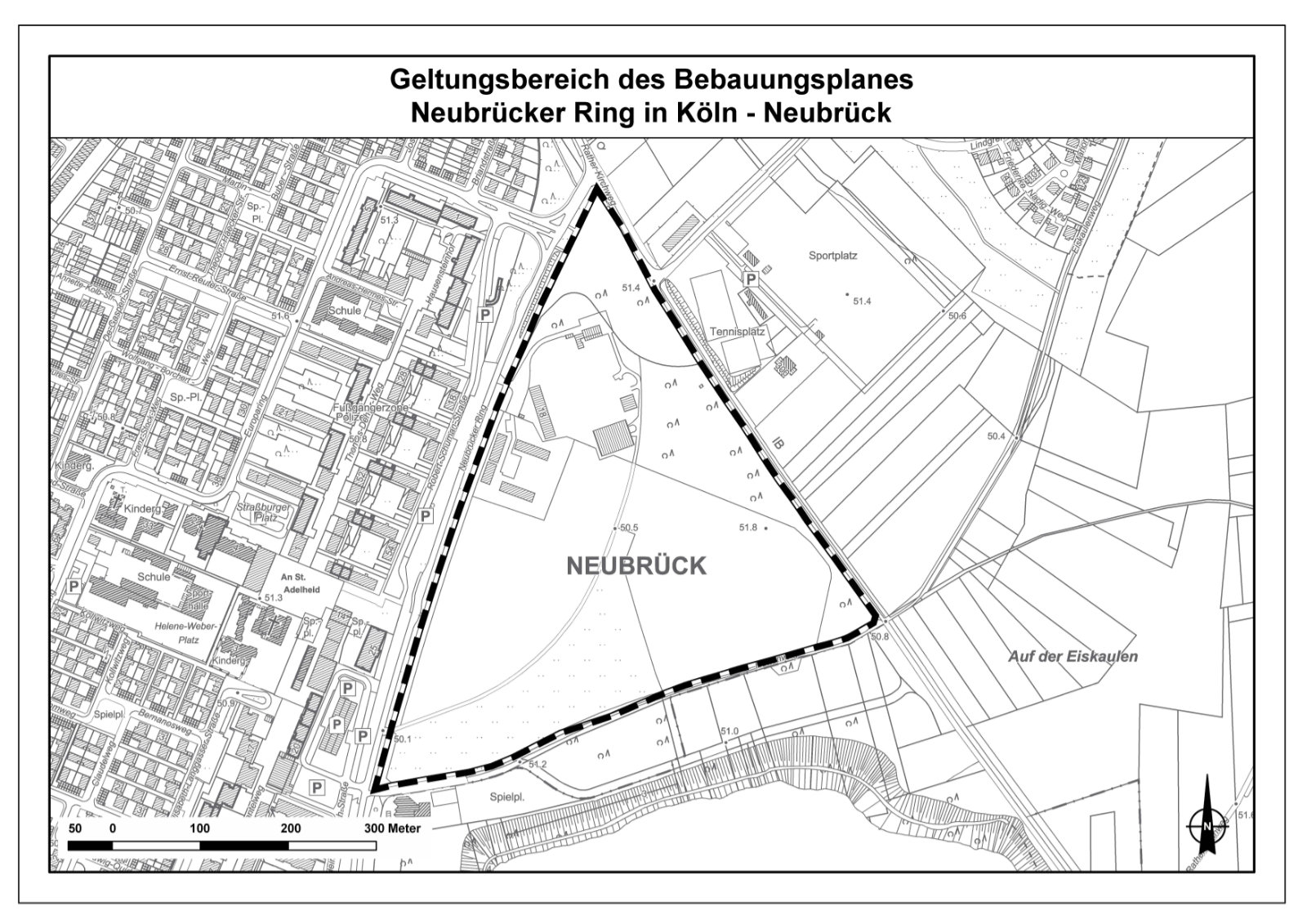 Das circa 16,3 Hektar große Bebauungsplangebiet liegt im Stadtbezirk Köln-Kalk, Stadtteil Neubrück.