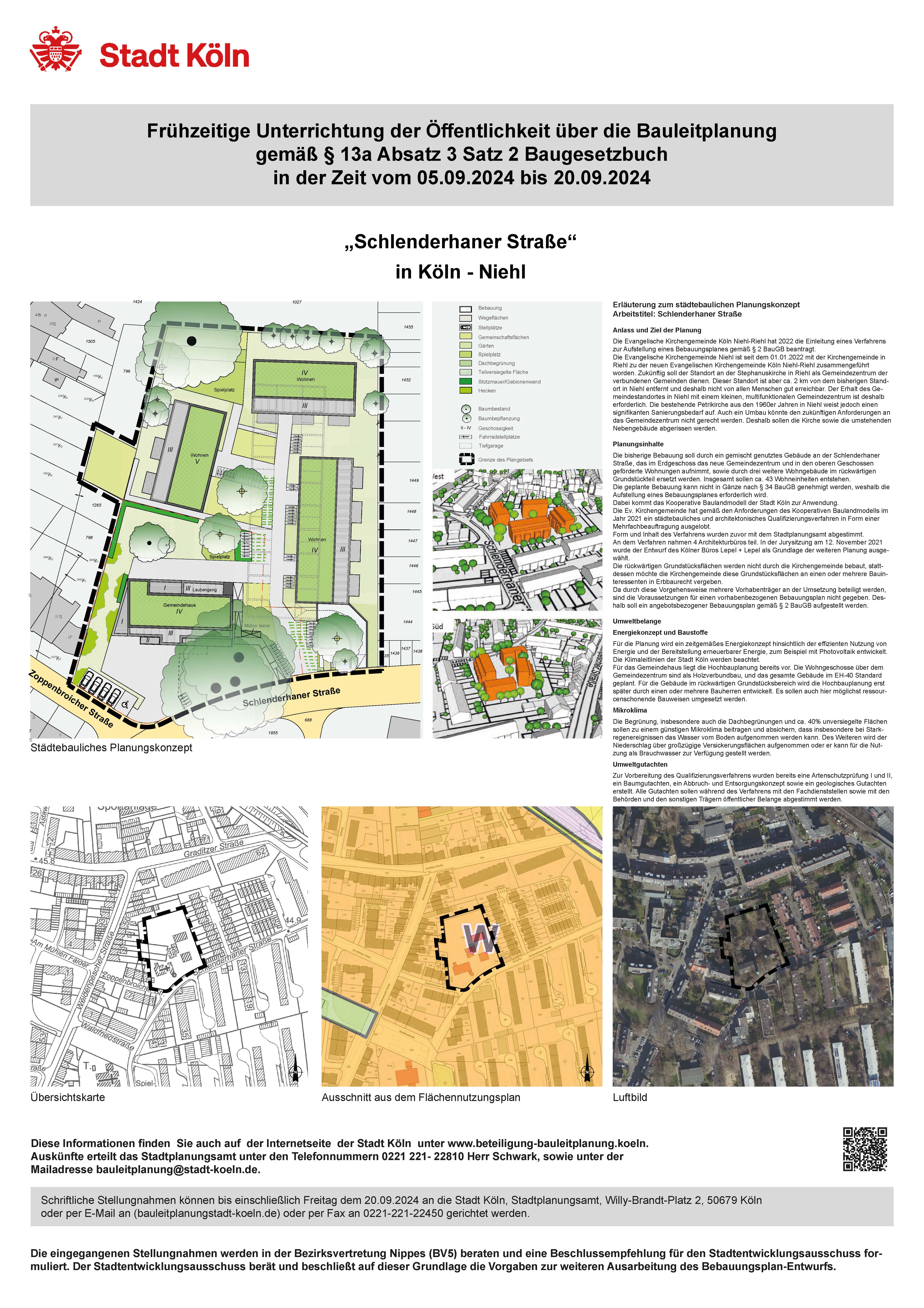 Der Stadtentwicklungsausschuss hat in seiner Sitzung am 20. Juni 2024 unter anderem beschlossen, nach § 2 Absatz 1 Baugesetzbuch (BauGB) in Anwendung des beschleunigten Verfahrens nach § 13a BauGB einen Bebauungsplan für das Gebiet nördlich der Schlenderhaner und der Zoppenbroicher Straße, westlich der Bebauung Schlenderhaner Straße 18a, 20, 20a, 22, 22a, 22b, 24, 24a, 26, 26a, 28, 28a sowie östlich der Bebauung Weidenpescher Straße 36, 38, 40, 42, 44, 46, 48, 48a, 50 und südlich der Bebauung Weidenpescher Straße 50a für das Grundstück Flur 002, Flurstück Nummer 1975 aufzustellen mit dem Ziel, ein allgemeines Wohngebiet festzusetzen.