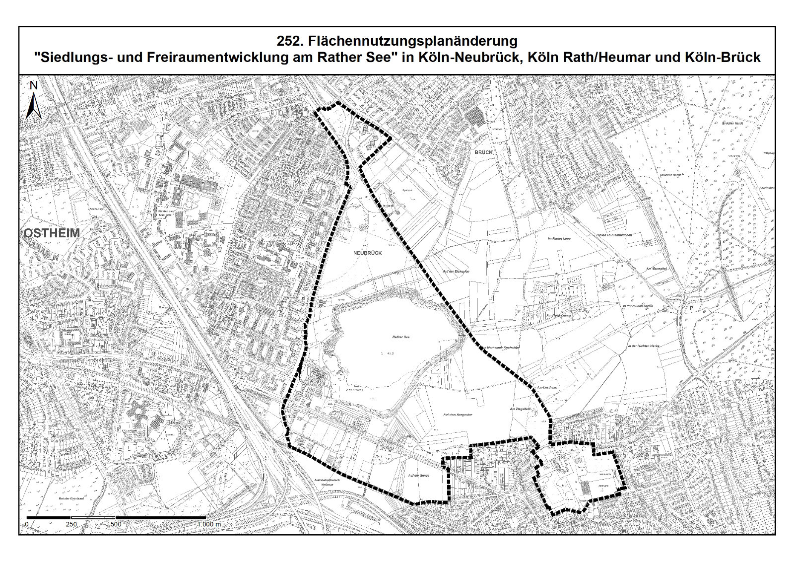Der circa 161 Hektar große Änderungsbereich liegt im Stadtbezirk Köln-Kalk, Stadtteile Neubrück, Rath/Heumar und Brück.
