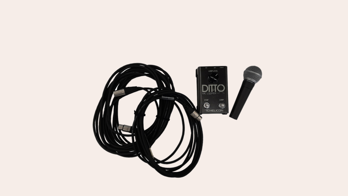 Der Looper ist ein Effektgerät, mit dem man das Eingangssignal –beispielsweise die Stimme – aufzeichnet und direkt wieder abspielt. Diese Aufzeichnung läuft endlos in Schleife (Loop) und kann mit weiteren Aufnahmen überspielt werden (Overdub), wobei die vorher aufgenommenen Loops erhalten bleiben. Die Box zum Ausleihen enthält neben dem Looper außerdem ein Looper Ditto Mic, ein Netzteil, ein Mikrofon (Shure SM58), ein Kabel XLR Female auf Klinke, ein Kabel XLR Female auf Male und eine Kurzanleitung.