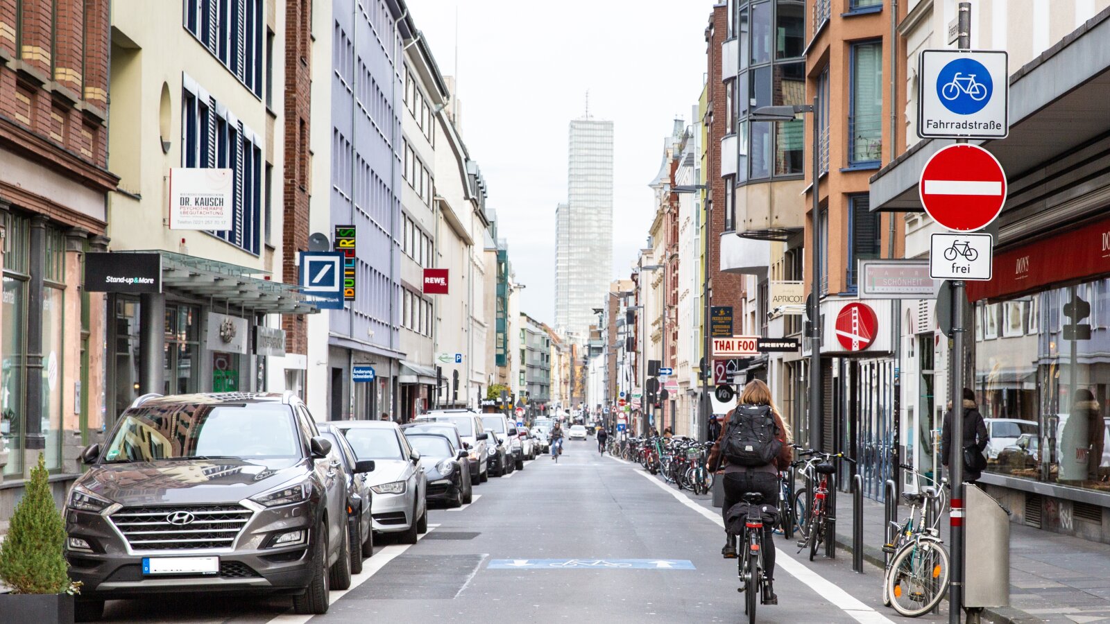 Seit 2019 ist der Friesenwall eine Fahrradstraße. Das Radfahren ist dort nun deutlich attraktiver. Bei der Neugestaltung der Straße haben wir auch die Fahrbahn verbreitert, damit alle Verkehrsteilnehmenden mehr Platz haben. Dafür sind etwa 50 Parkplätze entfallen. Das gab uns die Möglichkeit auch sogenannte Multifunktionsstreifen einzurichten. Auf diesen finden zum Beispiel Fahrradabstellanlagen, bepflanzte Sitzbänke und Parkscheinautomaten Platz, die vorher auf den Gehwegen zu finden waren. Das kommt besonders den zu Fuß Gehenden zu Gute.