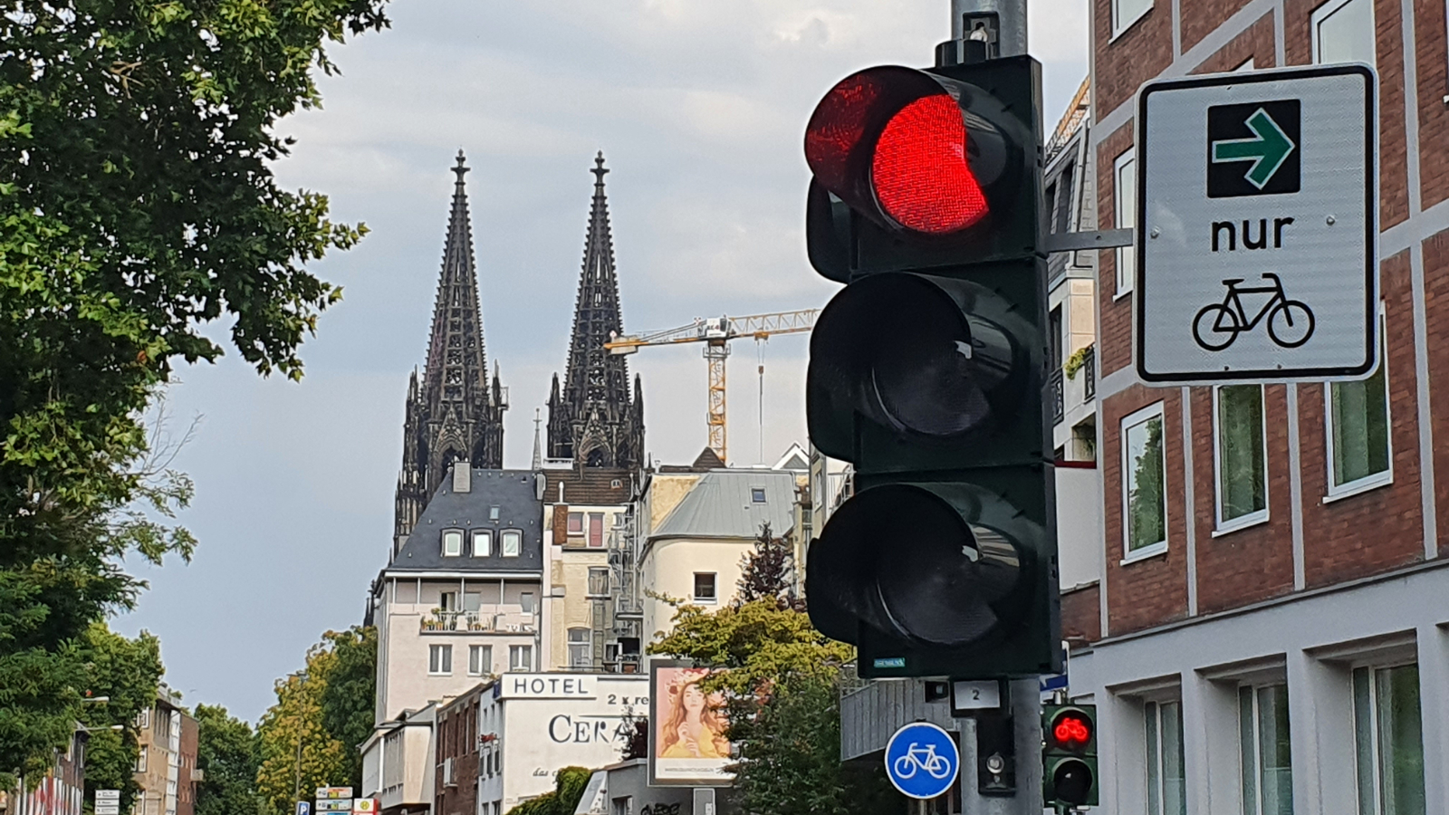 - Friedrich-Schmidt-Straße / Stadtwaldgürtel – linksrheinisch: zwei Grünpfeile