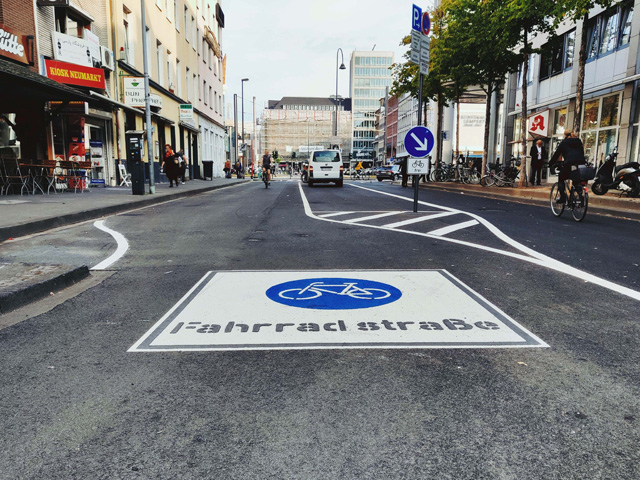 - Die Fahrspur in südlicher Fahrtrichtung, vom Neumarkt weg, wird als reine Fahrradstraße ausgewiesen. Autoverkehr ist hier nicht mehr zugelassen.