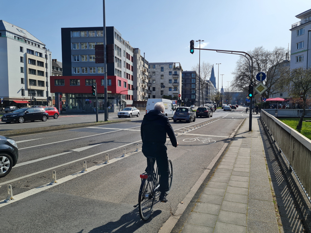 Damit haben wir eine wichtige Maßnahme aus dem Radverkehrskonzept Innenstadt umgesetzt und die fahrradfreundliche Umgestaltung der Innenstadt fortgeführt. Radfahrende aus dem Kölner Norden bietet der neue Radfahrstreifen eine komfortable Anbindung an die Altstadt/Nord. In einer weiteren Umsetzungsstufe wollen wir den Radfahrstreifen weiter über die Turiner Straße führen und einen Anschluss an den Hauptbahnhof herstellen.