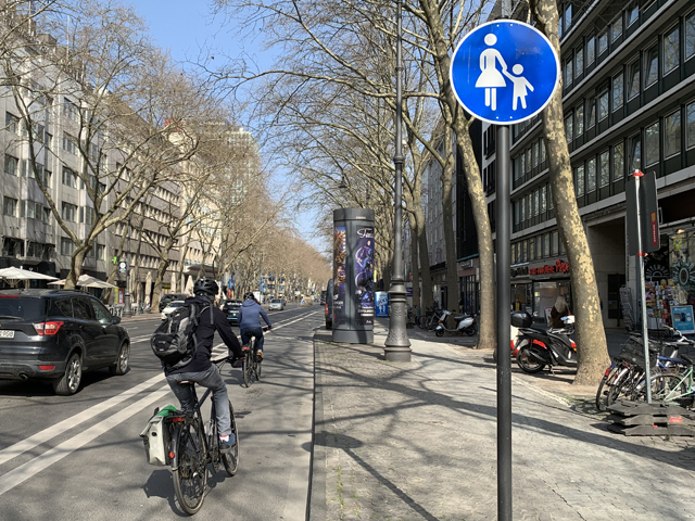 Durch die Verlegung des Radverkehrs auf die Fahrbahn sind zu Fuß Gehende jetzt klar vom Radverkehr getrennt. Gerade im Bereich der Ehrenstraße sorgte die bisherige Führung des Radverkehrs vermehrt zu Konflikten.