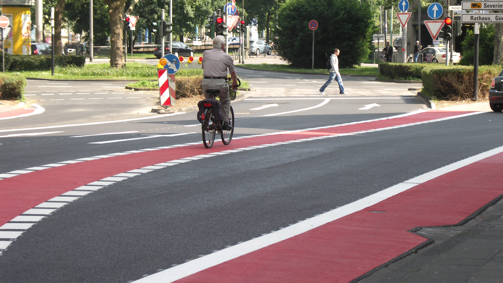 Im August 2017 haben wir die Überquerung des Hohenzollernrings zwischen Maastrichter Straße und Ehrenstraße durch ein eigenes Ampelsignal für den Radverkehr optimiert. Damit haben wir den ersten Schritt zur fahrradfreundlichen Umgestaltung der Nord-Süd-Fahrt getan.