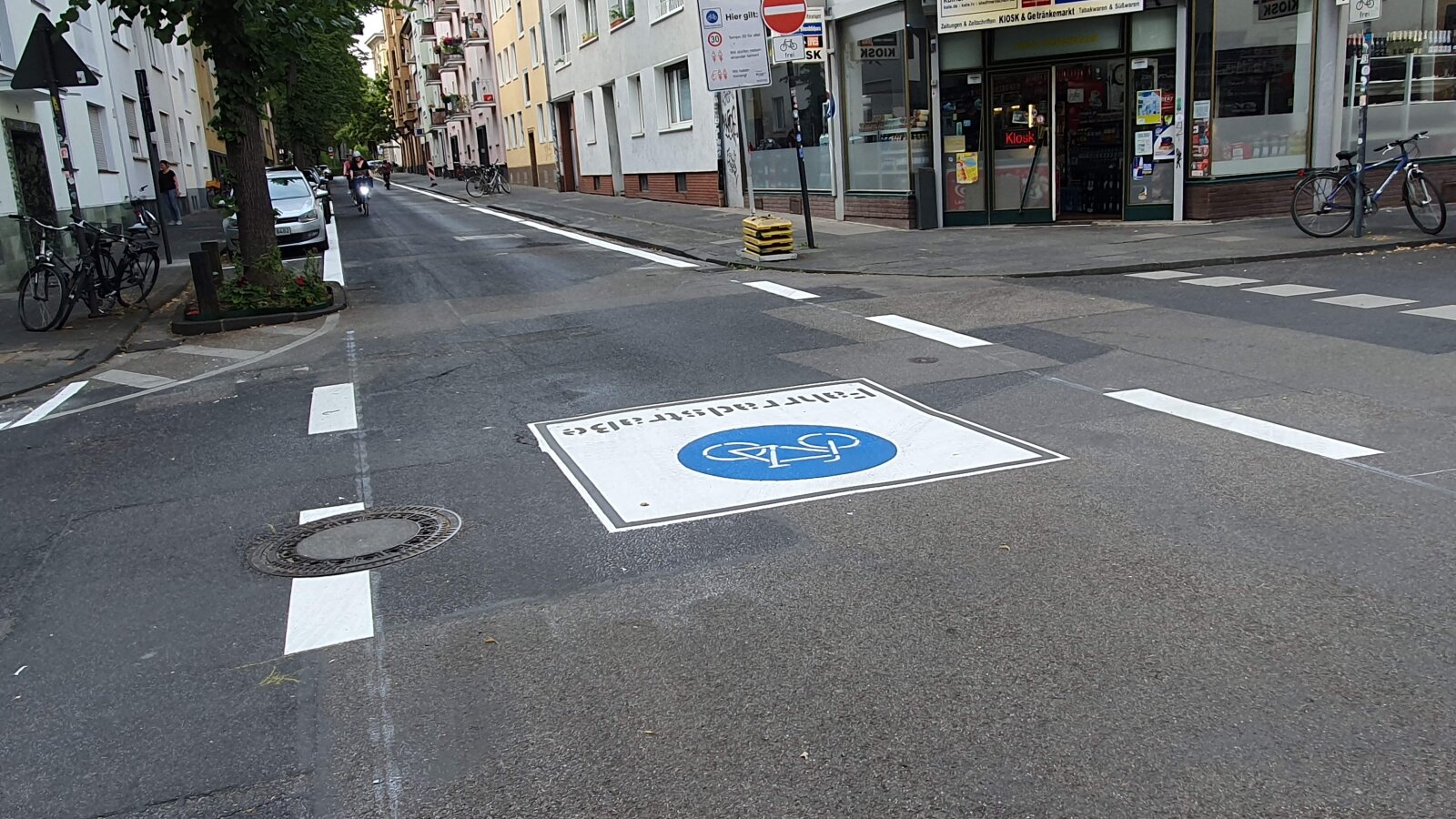 Stadteinwärts haben wir einen 1,50 Meter breiten Radschutzstreifen markiert. Im Zuge der Maßnahme haben wir die Höchstgeschwindigkeit auf der Gladbacher Straße auf 30 km/h begrenzt, vorher 50 km/h. Die Schließung dieser Netzlücke zwischen der Innenstadt und den Stadtteilen Ehrenfeld und Neuehrenfeld gehört als eine der sogenannten "Big 5-Maßnahmen" zu den wichtigen Zielen des Radverkehrskonzeptes.