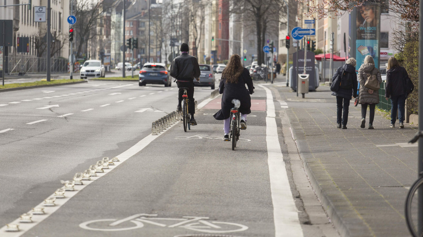 Im April 2021 haben wir die Aachener Straße / Richard-Wagner-Straße, zwischen Universitätsstraße und Eisenbahnring, fahrradfreundlich umgestaltet. Die rechte Autospur stadteinwärts wurde in einen 2,50 Meter breiten Radfahrstreifen mit einem zusätzlichen Sicherheitsraum zum fließenden Autoverkehr umgewandelt.