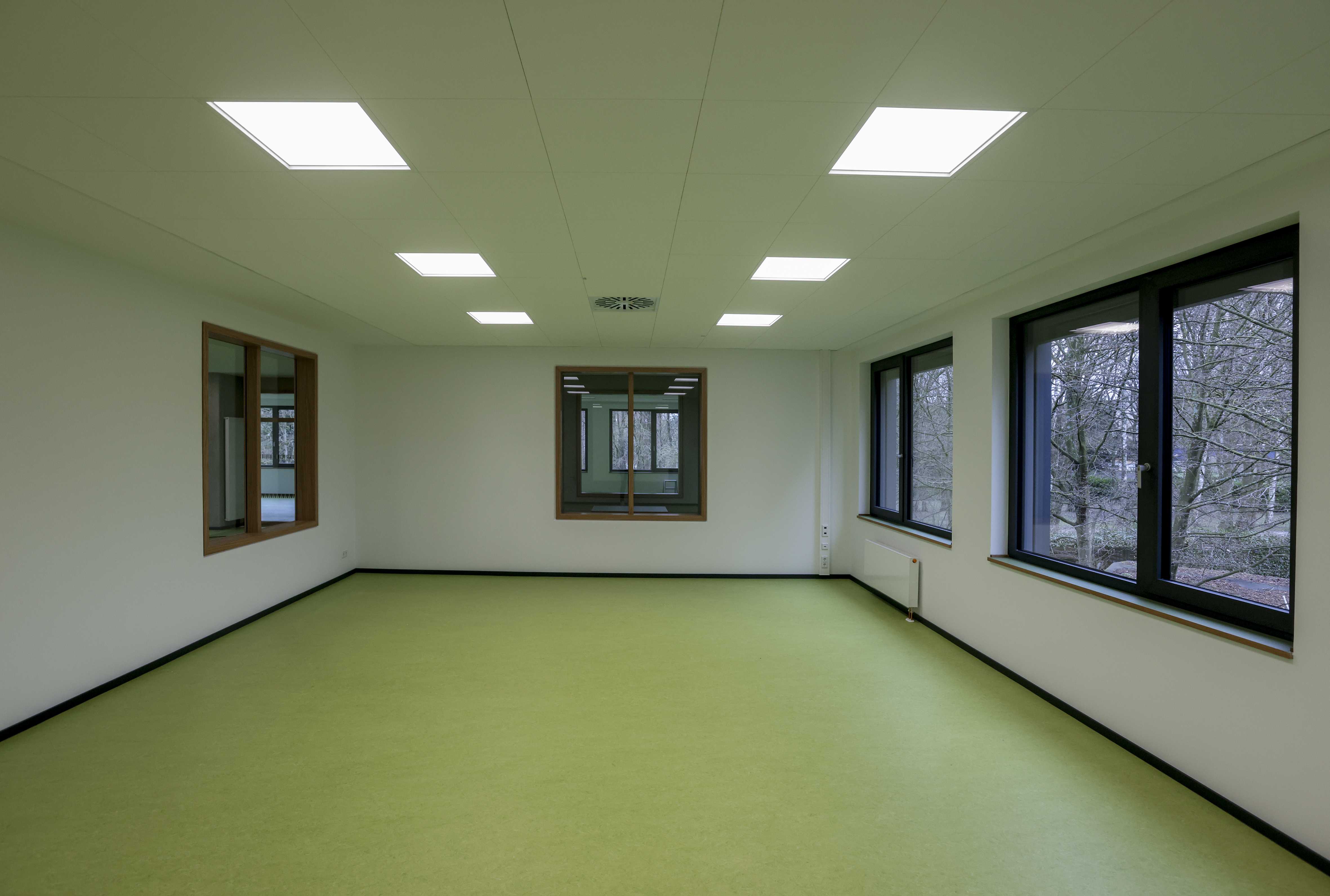 Die Bruttogrundfläche für den Baukörper beträgt rund 2.200 Quadratmeter. Davon befinden sich etwa 600 Quadratmeter auf dem Dach, wo neben der Lüftungseinrichtung auch eine Photovoltaik-Anlage installiert wurde, die einen Beitrag zur nachhaltigen Energiegewinnung leistet. Der Neubau bietet Platz für rund 120 zusätzliche Schüler*innen.