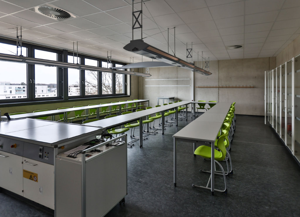 Beide Gebäude wurden in klimaschonender Passivhausbauweise errichtet. Auf dem Grundstück sind ebenso Flächen zur Versickerung von Niederschlagswasser und auf den Dachflächen rund 260 Quadratmeter Photovoltaik-Module entstanden. Der Neubau nach einem Entwurf aus dem Büro Kastner Pichler Architekten erfolgte bei laufendem Schulbetrieb, was immer eine besondere Herausforderung für uns und unsere externen Partner*innen bedeutet. Baubeginn war im dritten Quartal 2021. Investiert wurden rund 26,5 Millionen Euro. Hierin enthalten sind Baukosten in Höhe von 26,2 Millionen Euro sowie Einrichtungskosten in Höhe von rund 300.000 Euro.