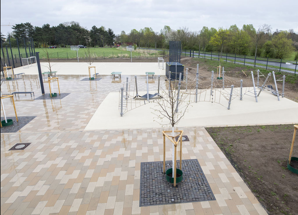 Auf dem Gelände wurden insgesamt 44 Solitärbäume unterschiedlicher Arten wie französischer Ahorn, Hopfenbuchen, Robinien sowie Amberbäume gepflanzt. Diese Baumarten sind für zukünftige Klimaveränderungen besonders gut geeignet.