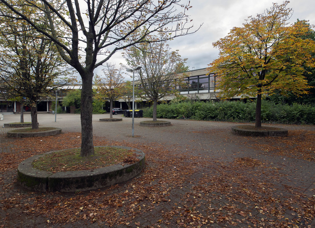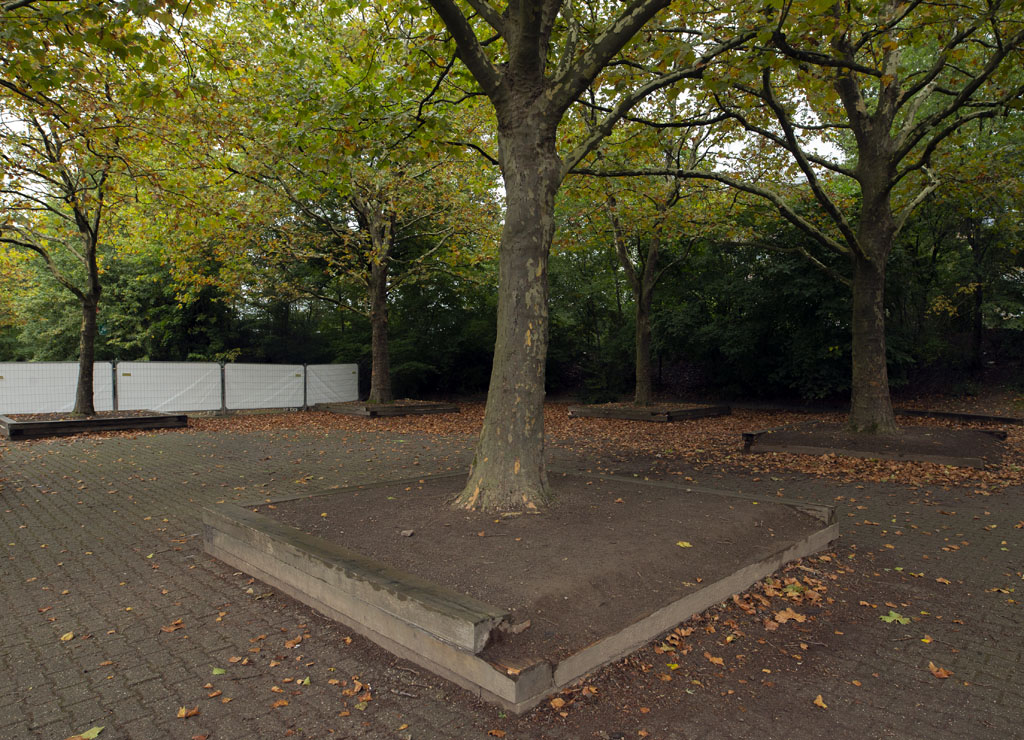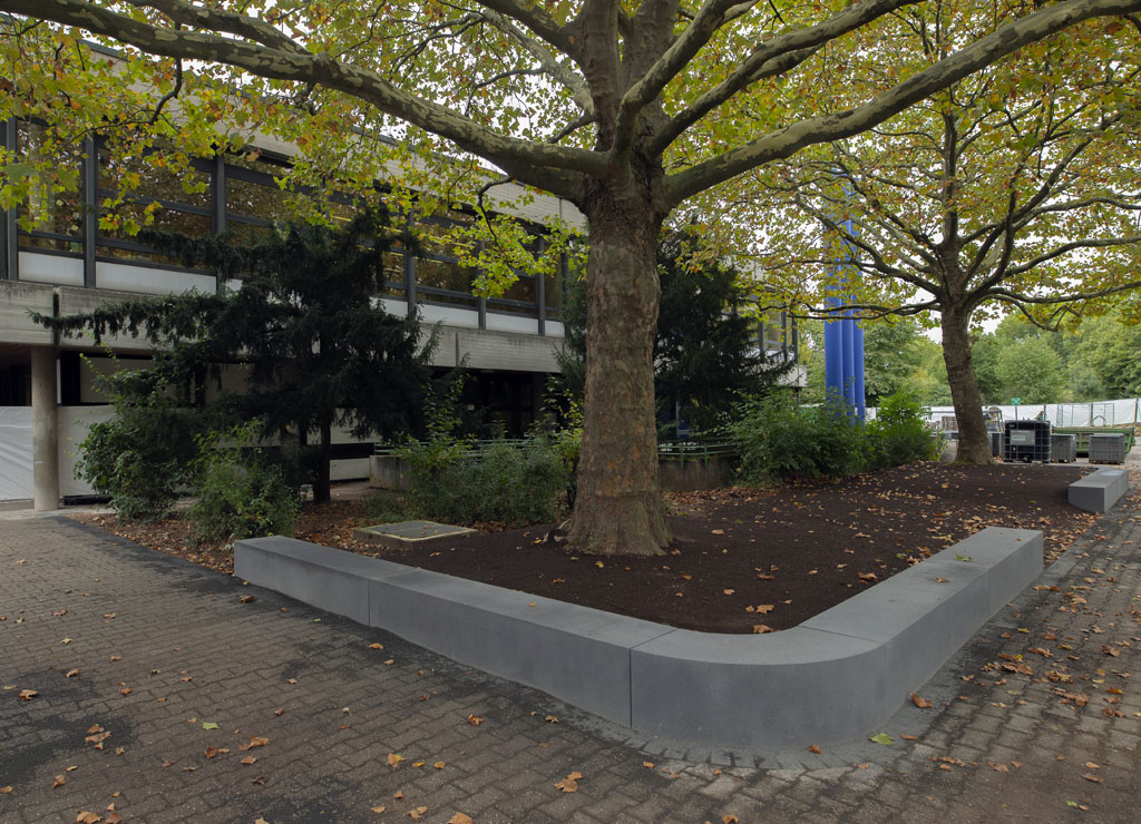 Im letzten Bauabschnitt haben wir noch weitere neun Bäume freigelegt und in großzügige Rasenwellen eingebettet. Außerdem haben wir den Müllcontainerplatz erneuert und neue Fahrradstellplätze errichtet.