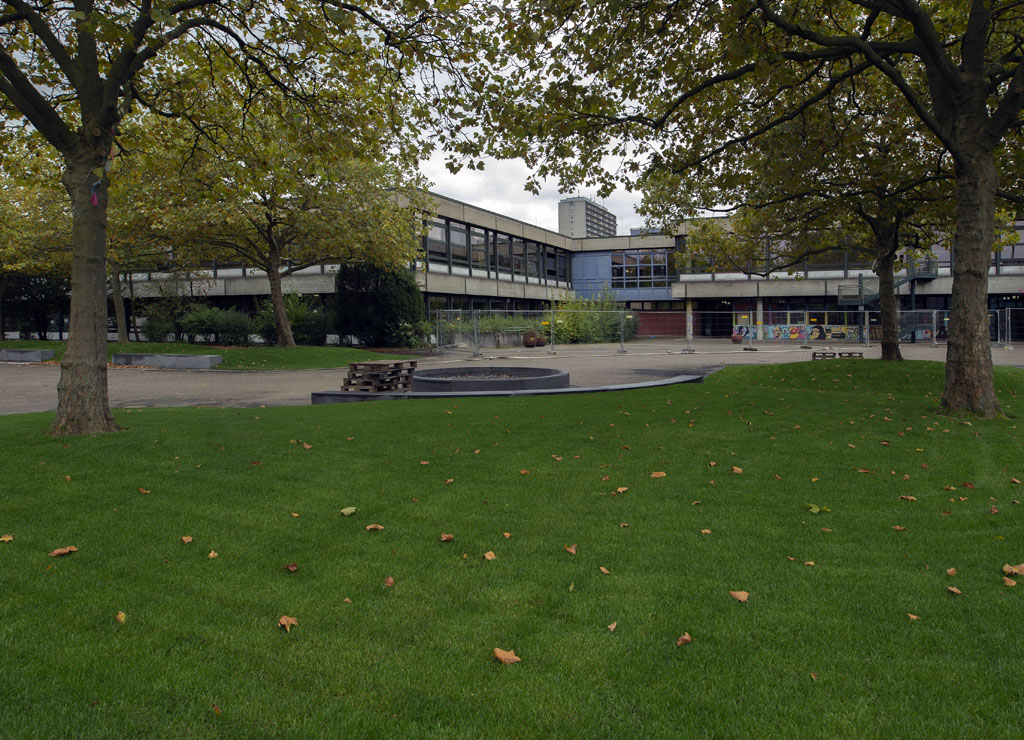 Auf dem Schulhof der Lise-Meitner-Gesamtschule haben wir im Frühjahr 2021 mit einer umfangreiche Entsiegelungsmaßnahme begonnen. Bei der Erneuerung von morschen Baumeinfassungen wurden rund 3.300 Quadratmeter Schulhoffläche saniert und sehr viel grüner gestaltet. In vier Maßnahmenabschnitten sind so circa 2.350 Quadratmeter Rasenfläche, 400 Quadratmeter Pflaster- und 150 Quadratmeter Spielplatzfläche sowie 400 Quadratmeter Vegetationsfläche entstanden. Große Bereiche der früheren Betonlandschaft sind nun deutlich pausen- und klimafreundlicher.