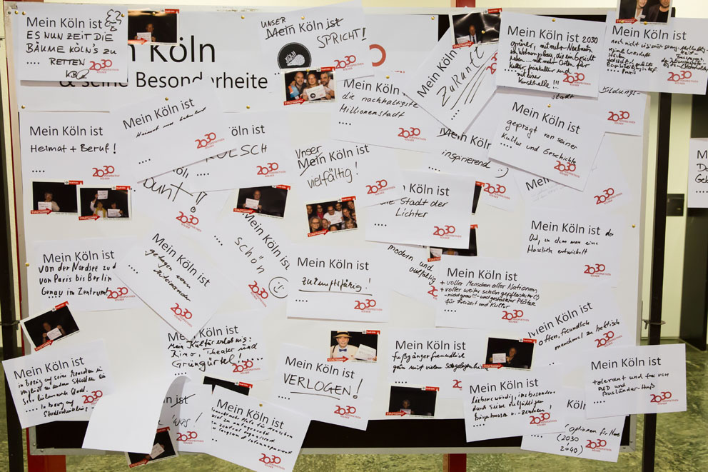 Das erste Stadtgespräch zur Frage "Wie wollen wir in Köln 2030 leben?" lockte rund 150 interessierte Bürgerinnen und Bürger in das Historische Rathaus. Deren Anregungen, Hinweise und Ideen haben wir Ihnen nachfolgend in einem Fotoprotokoll zusammengestellt.