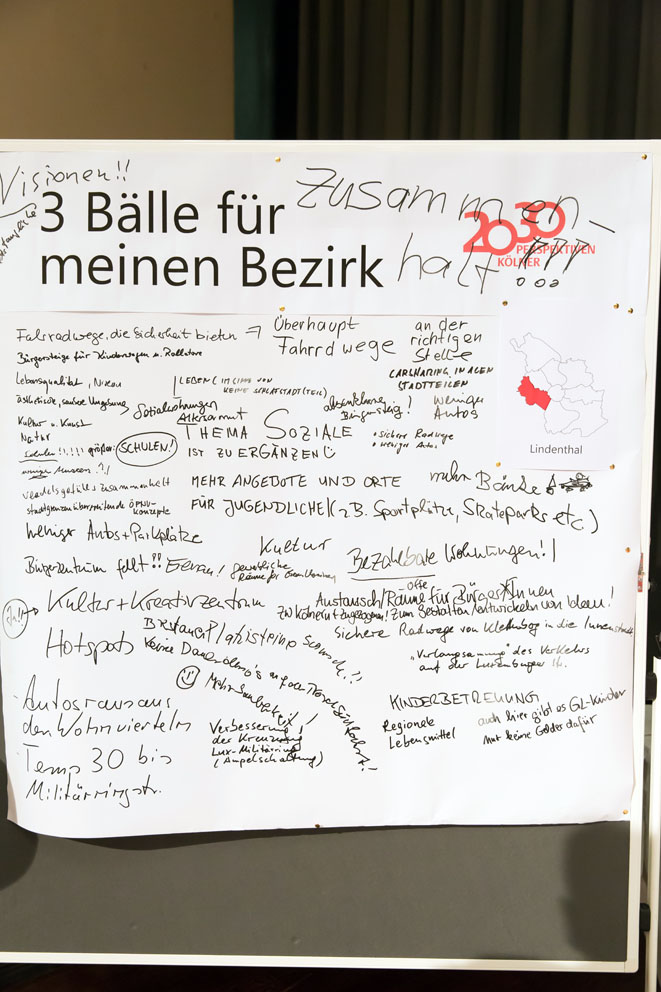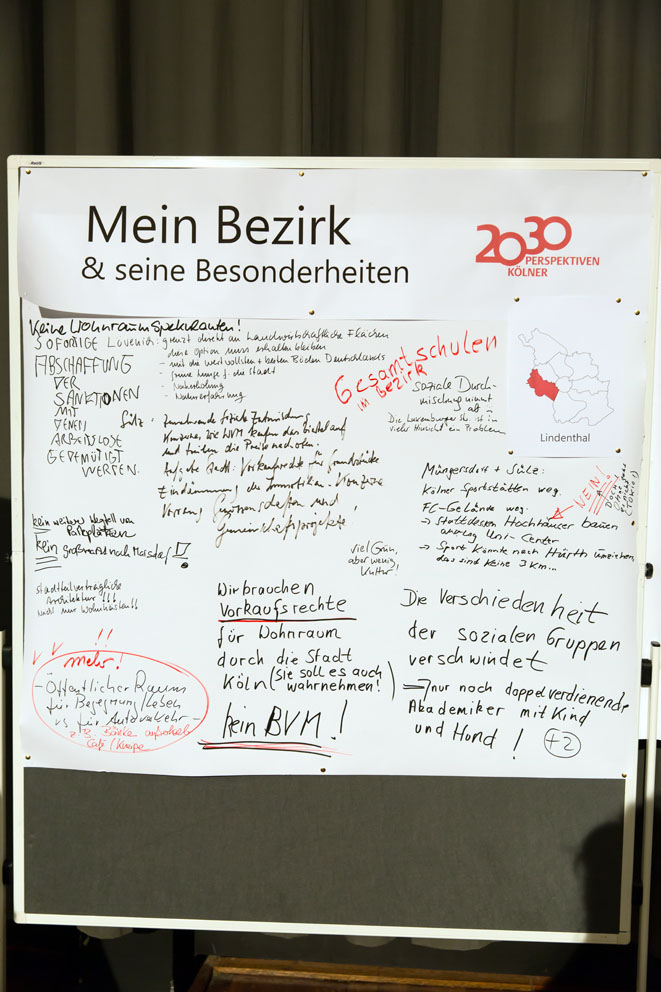 Der Einladung von Oberbürgermeisterin Henriette Reker zum dritten Stadtgespräch zur Frage "Wie wollen wir in Köln 2030 leben?" folgten etwa 250 Interessierte in das Hildegard-von-Bingen-Gymnasium. Ihre Anregungen, Hinweise und Ideen haben wir nachfolgend in einem Fotoprotokoll zusammengestellt.