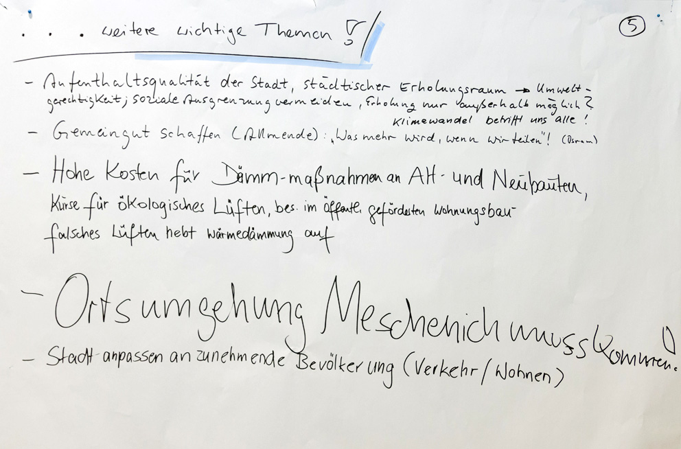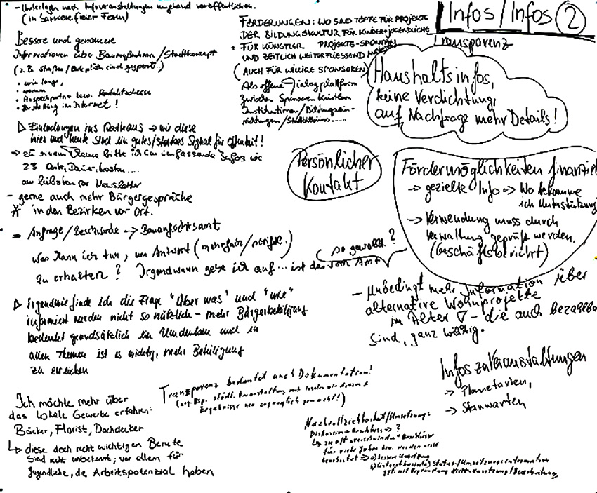 Die notierten Ideen der Bürgerinnen und Bürger sowie Fotos können Sie nachfolgend herunterladen.