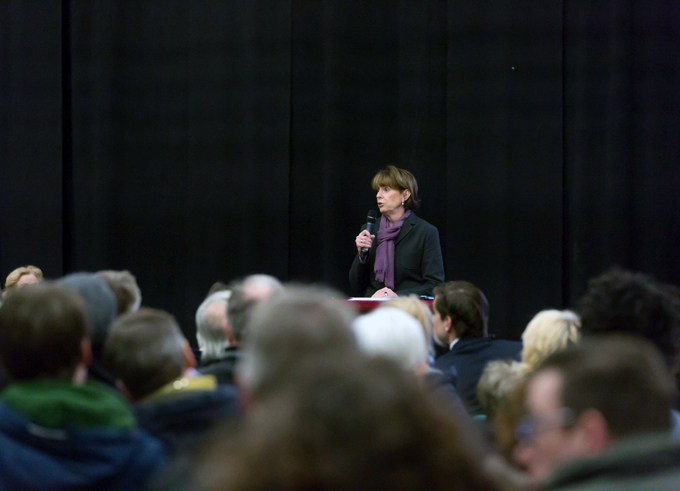Oberbürgermeisterin Henriette Reker war am 28. Februar 2018 zu Gast in den AbenteuerHallenKALK im Stadtbezirk Kalk. Rund 200 Bürgerinnen und Bürger waren auf Ihre Einladung hin gekommen.