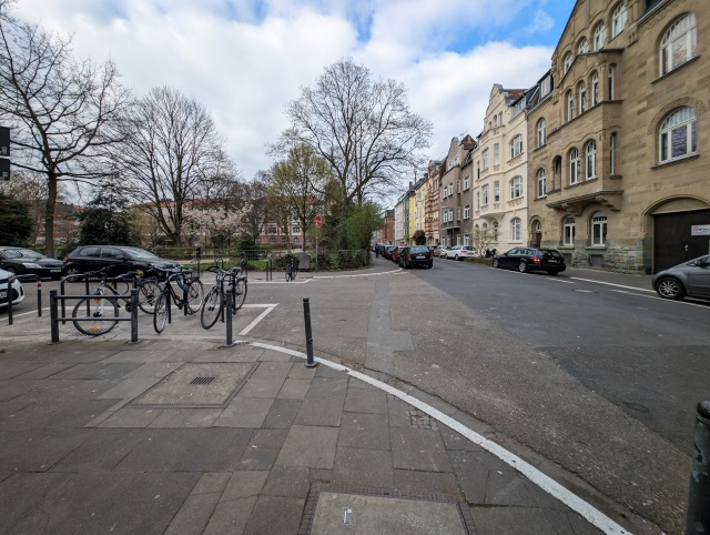 Die Stadt Köln hat heute am Leipziger Platz das Konzept "Freie Ecke" vorgestellt. Eindeutige Markierungen und das Platzieren von Fahrradbügeln am Seitenrand sorgen dafür, dass die Kreuzungen und Einmündungsbereiche in den Kölner Veedeln wie gesetzlich vorgeschrieben frei bleiben. Das Überqueren der Straße wird für die Fußgänger*innen durch freie Sicht sicherer. Gleichzeitig können die Kfz- sowie Radfahrer*innen die Bereiche gut überblicken und Rettungsfahrzeuge kommen besser um die "Ecke".