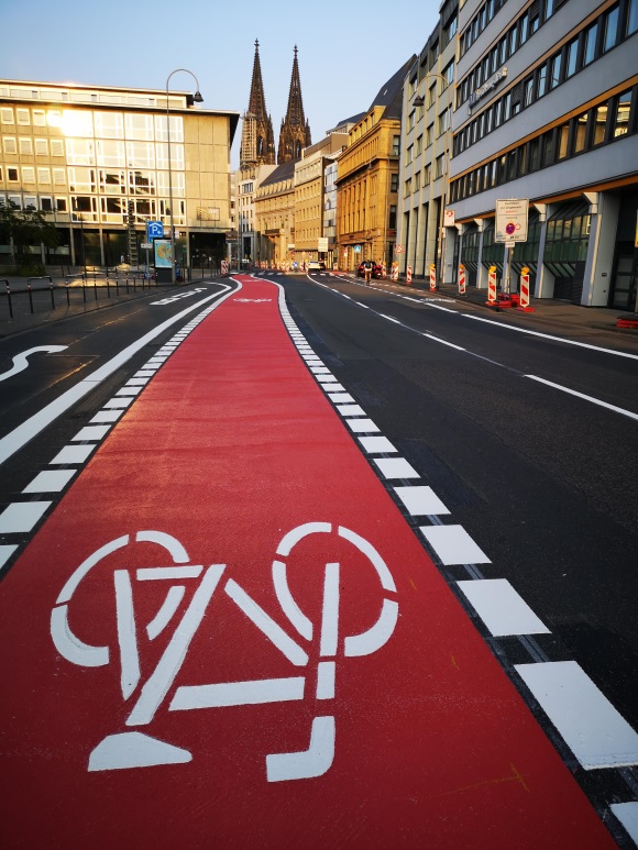 Zwischen Börsenplatz und Cardinalstraße wurden 2,50 Meter breite Radfahrstreifen unter Umnutzung einer Kfz-Fahrspur sowie von Parkplätzen eingerichtet. Im Bereich des Bushaltepunkts Gereonstraße wurde der Radfahrstreifen zur Erhöhung der Verkehrssicherheit der Radfahrenden komplett in rot eingefärbt. In westlicher Fahrtrichtung zwischen Tunisstraße und "Kattenbug" sowie zwischen Marzellenstraße und Stolkgasse wurden 1,50 Meter breite Radschutzstreifen markiert. Der Bereich Tunisstraße/Unter Sachsenhausen wird nach erfolgter Deckensanierung markiert.