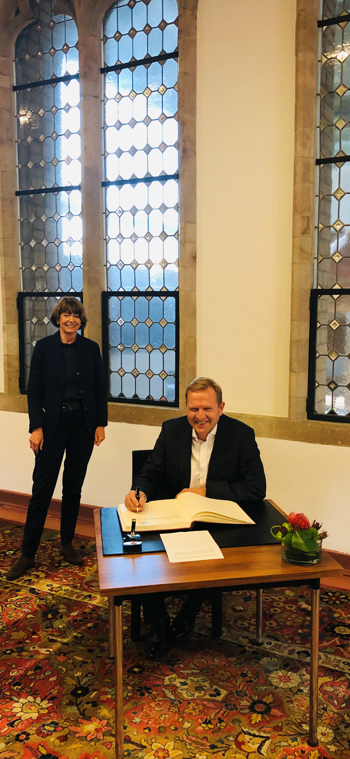Mit einer Eintragung ins Gästebuch der Stadt Köln hat Oberbürgermeisterin Henriette Reker den Geschäftsführer und Präsidenten von Toyota Deutschland, Alain Uyttenhoven, geehrt. Anlass war das 50-jährige Bestehen des Unternehmens in Deutschland, von Beginn an in Köln. Der Erfolg des Unternehmens, der 1897 mit der Produktion eines serienreifen vollautomatischen Webstuhls begann, setzt sich seit 1935 erfolgreich mit der Automobilproduktion fort. Mit seiner Zentrale in Köln wurde das japanische Traditionsunternehmen 1970 in das Handelsregister eingetragen und damit auch in Deutschland ansässig. 1971 hat das Unternehmen die Arbeit in Köln aufgenommen. Toyota ist ein Unternehmen von weltweiter Bedeutung und seit Jahrzehnten ein wichtiger Arbeitgeber für Köln und die Region.