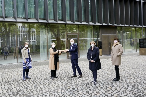 Die Schlüsselübergabe für den Neubau des Historischen Archivs und des Rheinischen Bildarchivs am Eifelwall ist erfolgt. Baudezernent Markus Greitemann übergab ihn am heutigen Mittwoch, 26. Mai 202, an seine Amtskollegin, Kulturdezernentin Susanne Laugwitz-Aulbach.