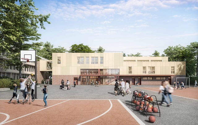 An der Kattowitzer Straße entsteht eine neue Turnhalle mit Klassentrakt